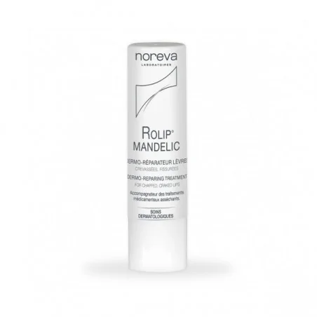 LED Noreva Rolip Mandelic Stick Lèvres Hydratant et réparateur. Conditionnement : étui tournant, boîte carton. • Indications : soin des lèvres desséchées, gerçures, fissures des lèvres. • Composition : formule INCI : beeswax, paraffinum liquidum, cocoa butter, paraffin, hydrogenated coco glycerides, stearyl heptanoate, ozokerite, zinc oxide, fragance, ammonium glycyrrhizate, hydrogenated EGG yolk lecithin.