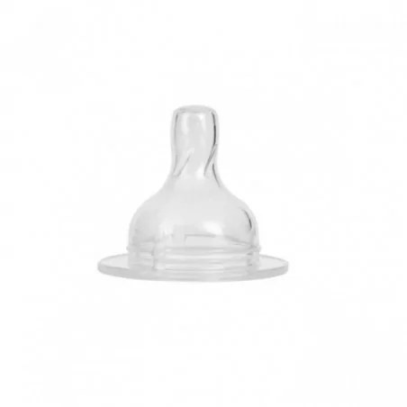 Tétine à col large transparente de la marque Pur à flux variable permet au flux du liquide d’être ajusté en tournant simplement la tétine vers l’une des trois différentes positions. Cette tétine spéciale a un design avec un trou unique, quand il est positionné dans la bouche du bébé avec le numéro 1-2 ou 3 donnera 3 différents flux selon la demande. 1 : Léger 2 : Moyen 3 : Rapide Caractéristiques : En silicone Extra-souple de qualité médicale. Flux variable. Respecte le développement de la cavité buccale de bébé. Collerette annulaire radiale avec épaisseur optimale pour éviter les fuites. Contenance : 1 tétine